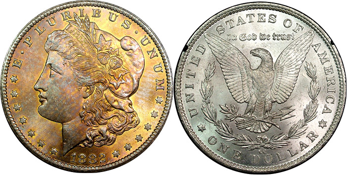 View the largest gallery of high-end and Monster rainbow toned Morgan dollars, an informational guide on how to tell natural vs. artificial toning, learn to price toned Morgans, view auction results of rainbow Morgans, and view what characteristics to look for in high-end toned rainbow Morgan dollars.