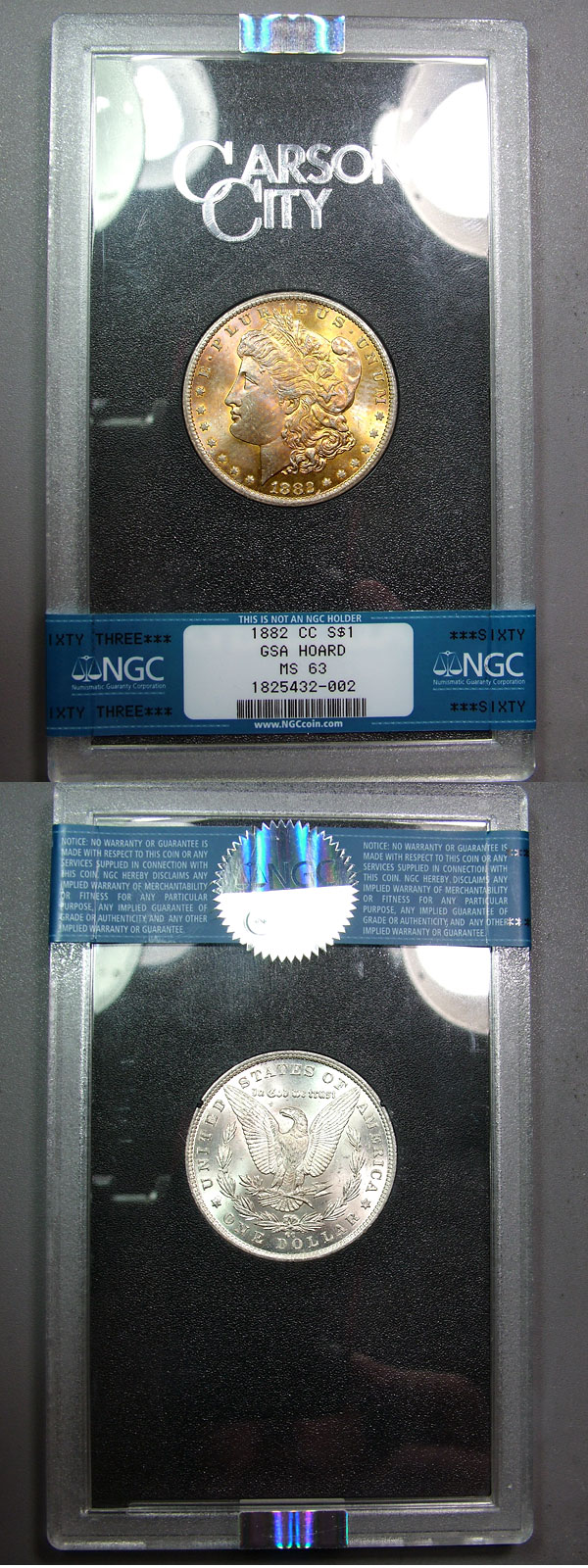 1882-CC $1 NGC MS63 GSA Golden Textile Toned Morgan