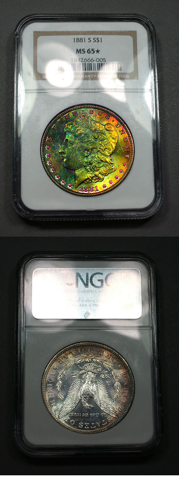 1881-S $1 NGC MS65* STAR Monster Toned Morgan - Green Hornet