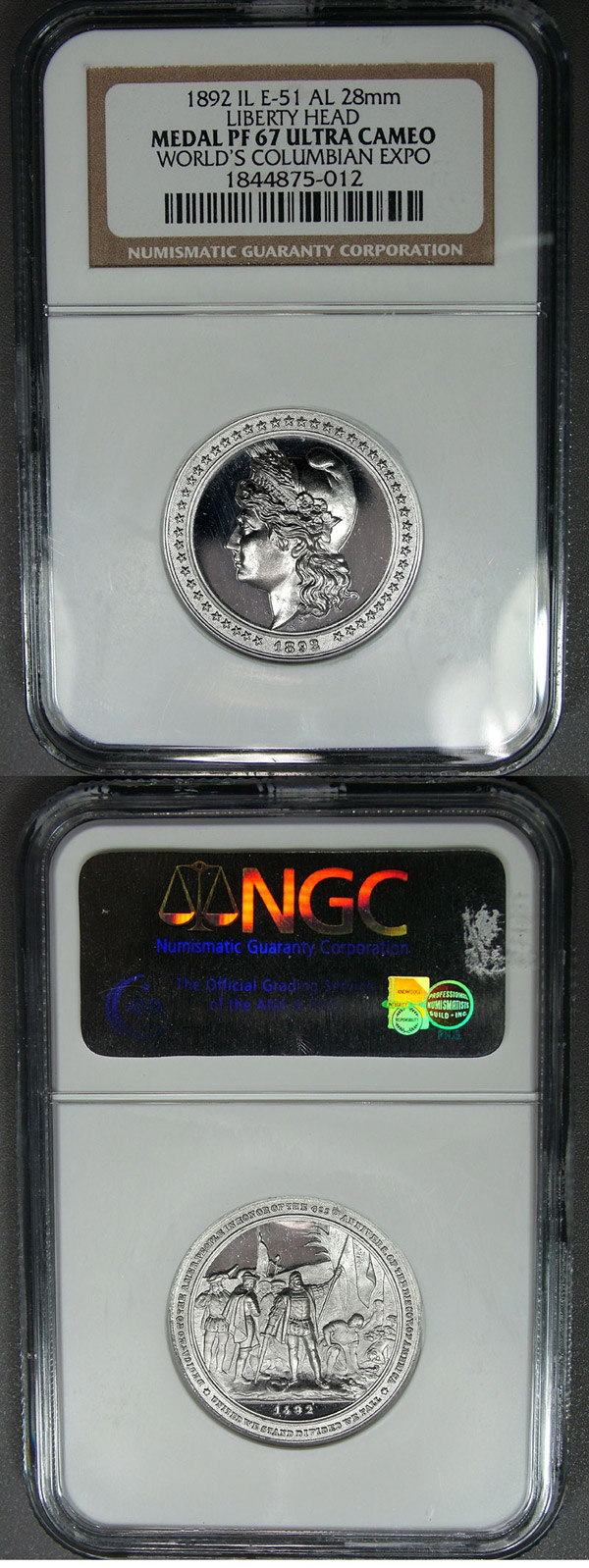 1892 SC$1 NGC PF67 UCAM HK-222 28mm Columbian Expo