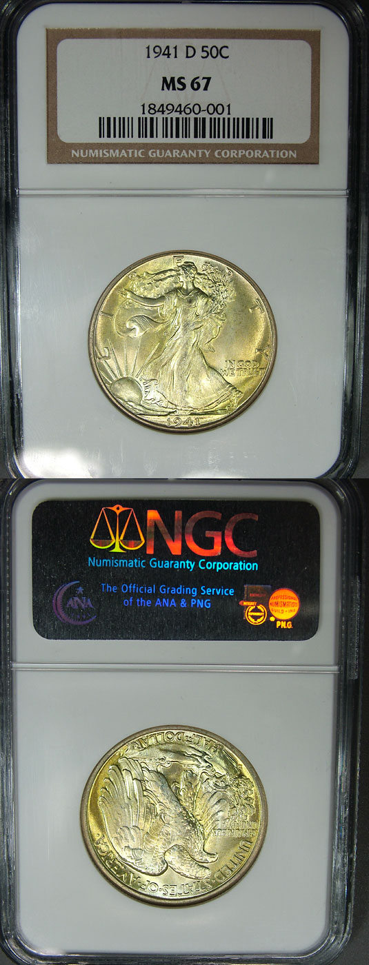 1941-D 50c NGC MS67 Marvelous Vivid Yellow Toned Walker