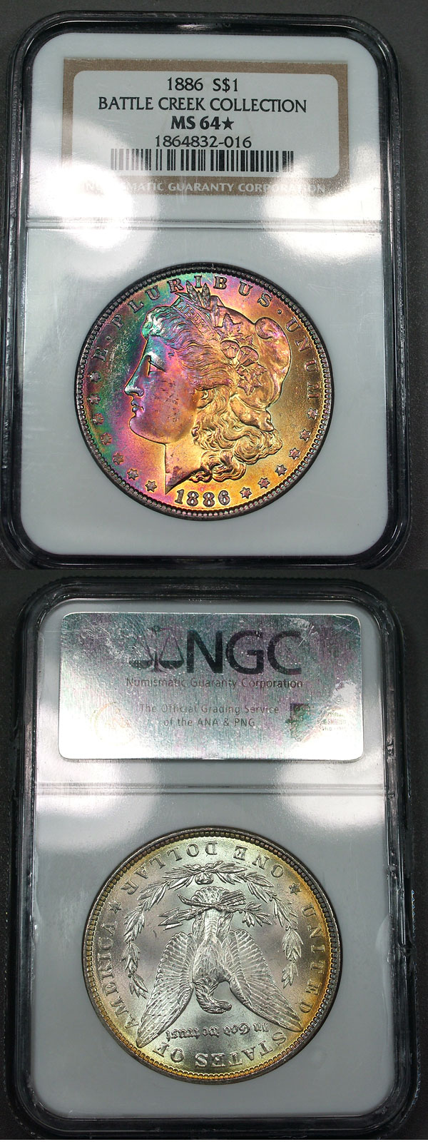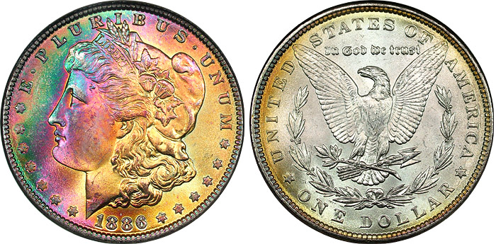 1886 $1 NGC MS64* STAR Rainbow Toned Morgan - Oasis