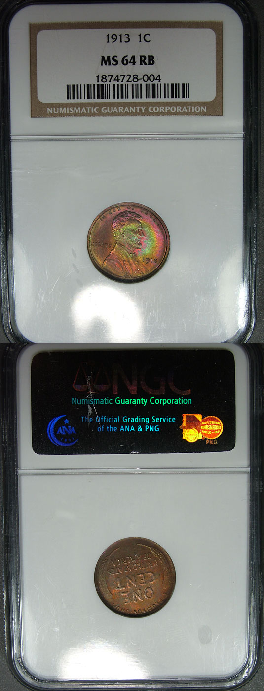 1913 1c NGC MS64RB Target Rainbow Toned Lincoln Cent