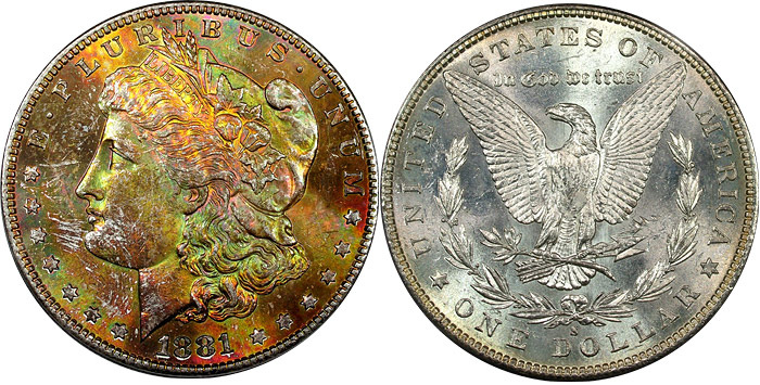 rainbow Morgan dollars.
