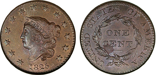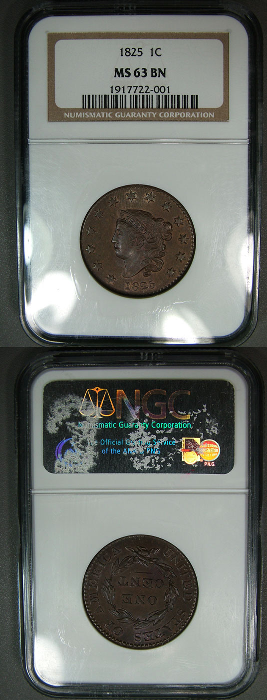 1825 1c NGC MS63BN Matron Head Large Cent, N3