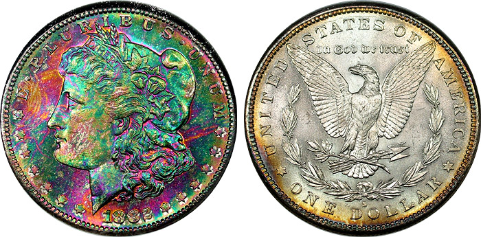 View the largest gallery of high-end and Monster rainbow toned Morgan dollars, an informational guide on how to tell natural vs. artificial toning, learn to price toned Morgans, view auction results of rainbow Morgans, and view what characteristics to look for in high-end toned rainbow Morgan dollars.