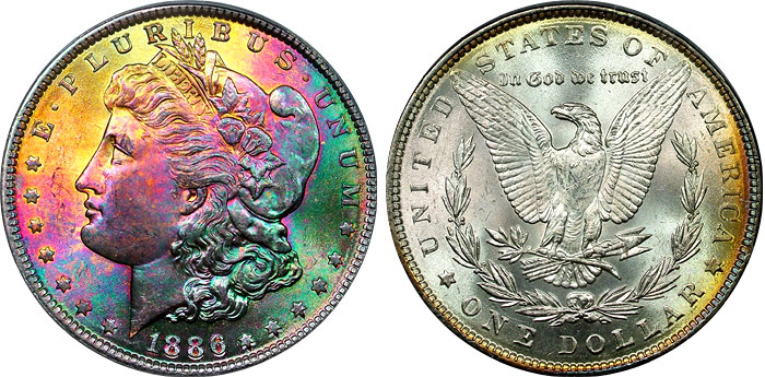 rainbow Morgan dollars.