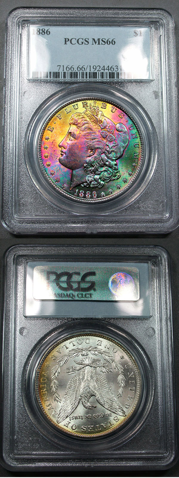 1886 $1 PCGS MS66 High-End Rainbow Toned Morgan - Spring Fling