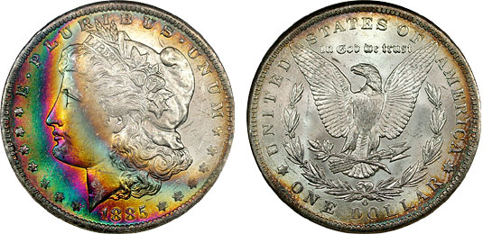 rainbow Morgan dollars.