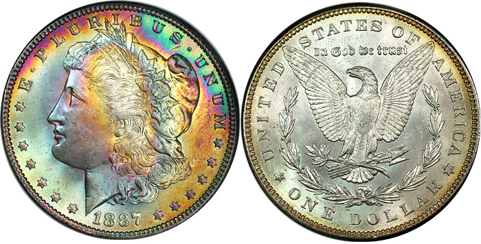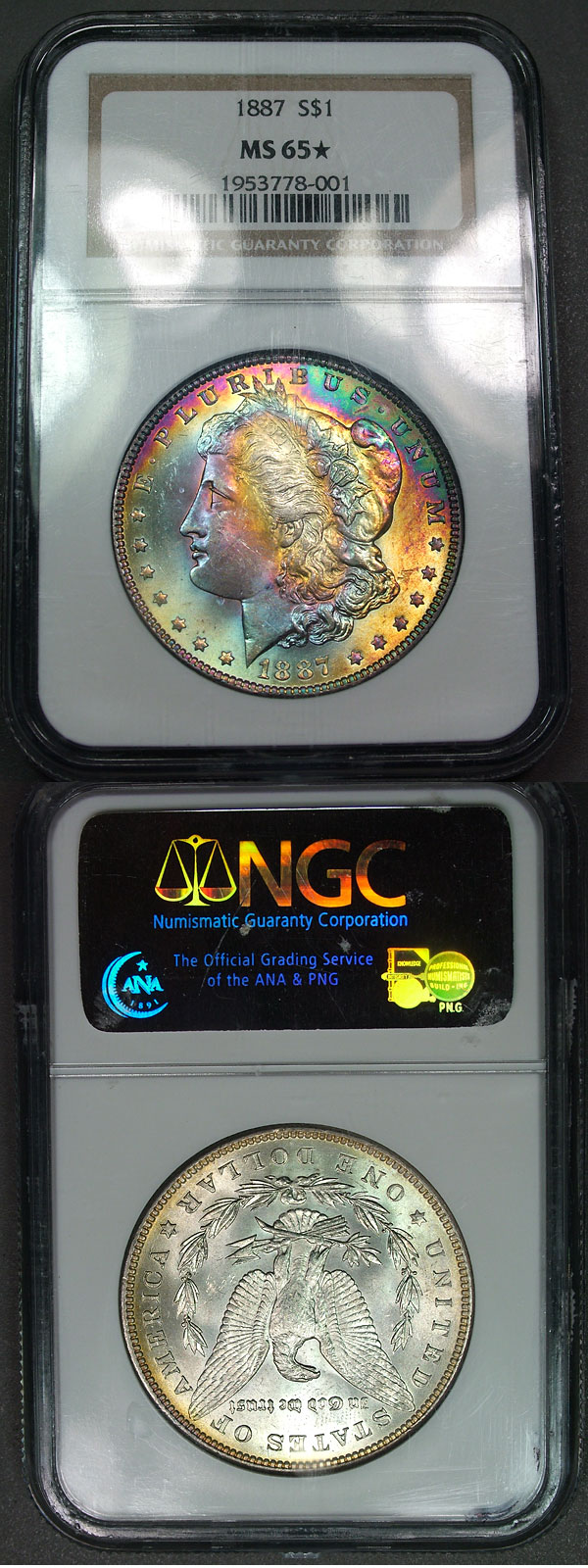 1887 $1 NGC MS65* Star Wild Rainbow Toned Morgan