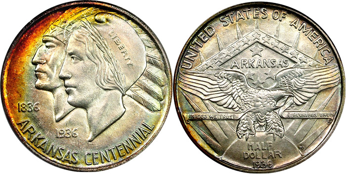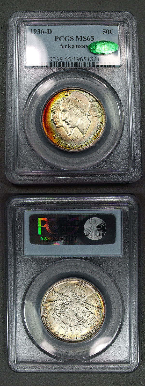 1936-D 50C PCGS MS65 Toned Arkansas Commem