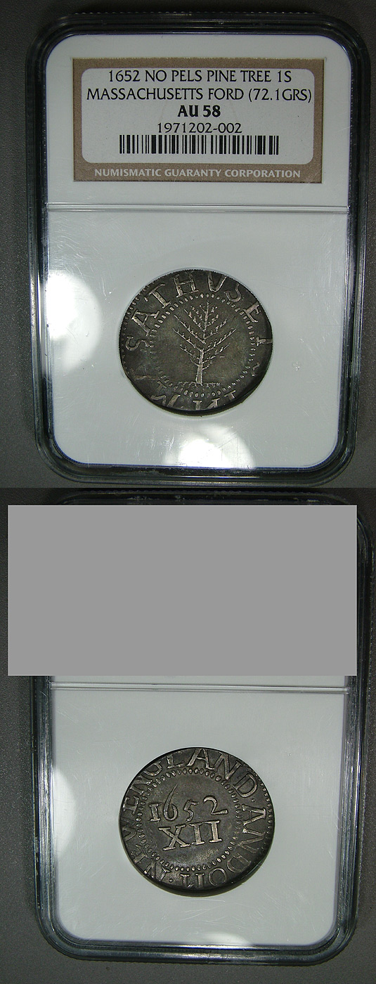 1652 1S NGC AU58 Pine Tree Shilling - Noe 2: Straight Tree