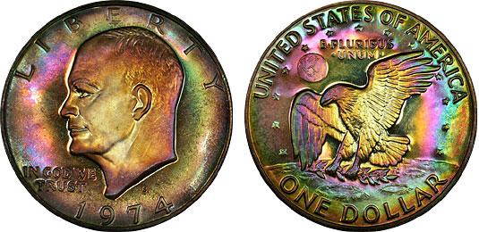 1974-S $1 40% Silver Ike - ARTIFICIALLY TONED
