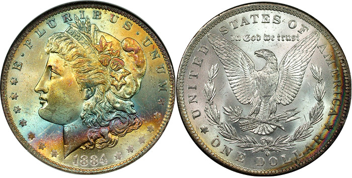 View the largest gallery of high-end and Monster rainbow toned Morgan dollars, an informational guide on how to tell natural vs. artificial toning, learn to price toned Morgans, view auction results of rainbow Morgans, and view what characteristics to look for in high-end toned rainbow Morgan dollars.
