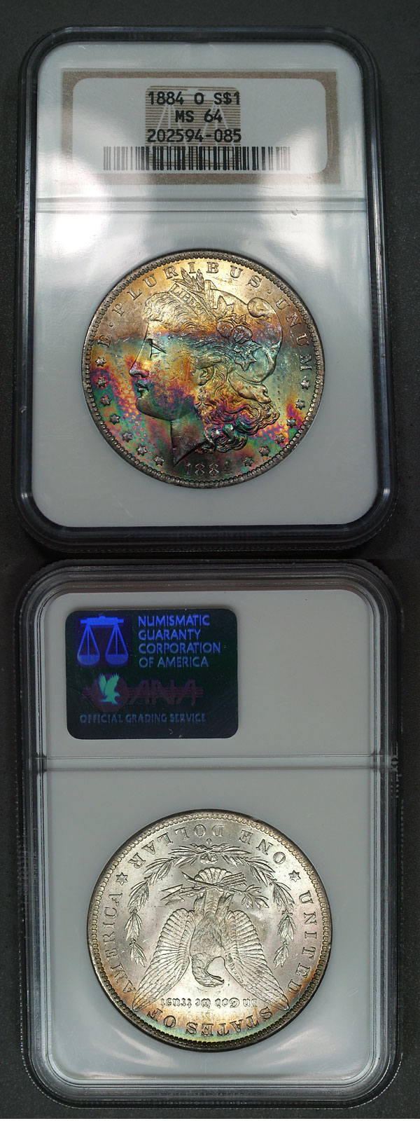 1884-O $1 NGC MS64 Rainbow Toned Morgan - Drowning Lady
