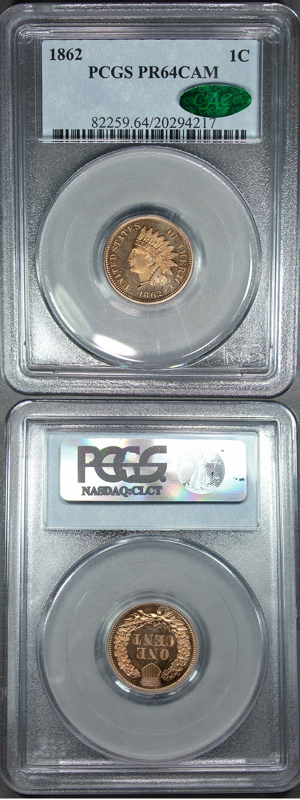 1862 1c PCGS PR64CAM CAC Cameo Proof Indian Cent