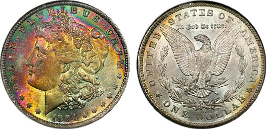 View the largest gallery of high-end and Monster rainbow toned Morgan dollars, an informational guide on how to tell natural vs. artificial toning, learn to price toned Morgans, view auction results of rainbow Morgans, and view what characteristics to look for in high-end toned rainbow Morgan dollars.