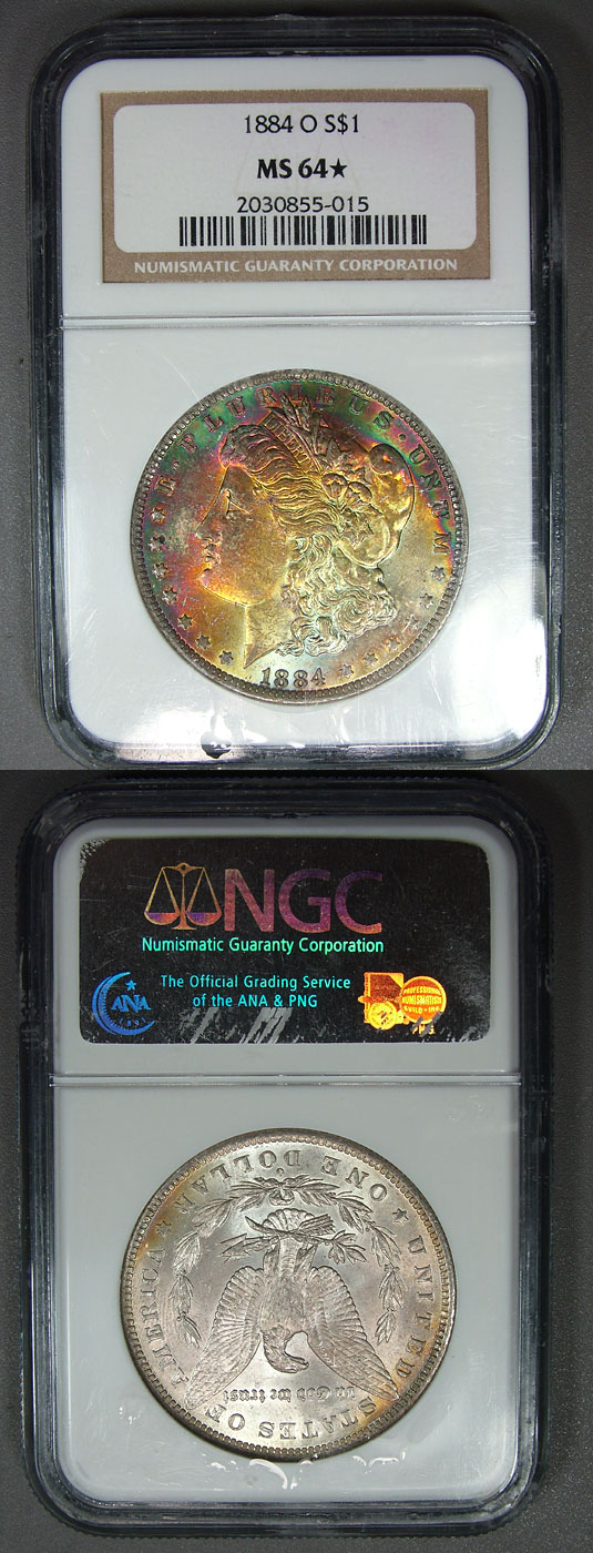 1884-O $1 NGC MS64* Rainbow Toned Morgan Dollar