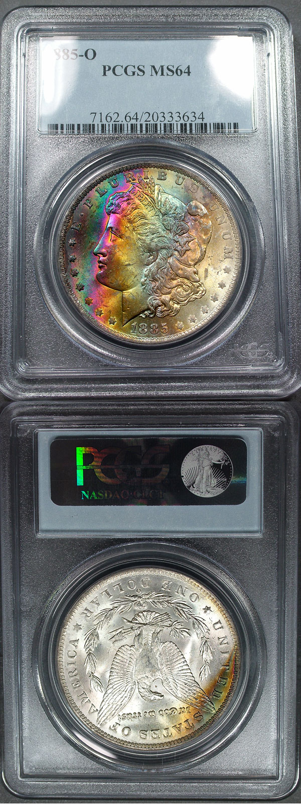 1885-O $1 PCGS MS64 Vivid Neon Rainbow Morgan