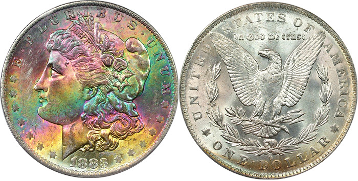 View the largest gallery of high-end and Monster rainbow toned Morgan dollars, an informational guide on how to tell natural vs. artificial toning, learn to price toned Morgans, view auction results of rainbow Morgans, and view what characteristics to look for in high-end toned rainbow Morgan dollars.
