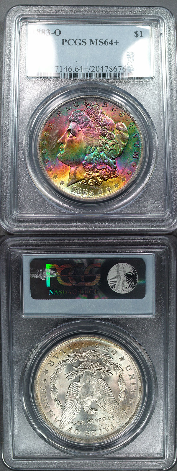 1883-O $1 PCGS MS64+ Stunning Rainbow Toned Morgan