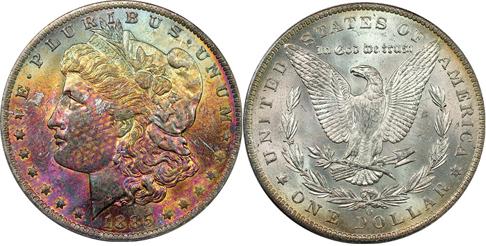 rainbow Morgan dollars.