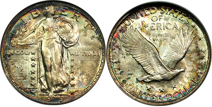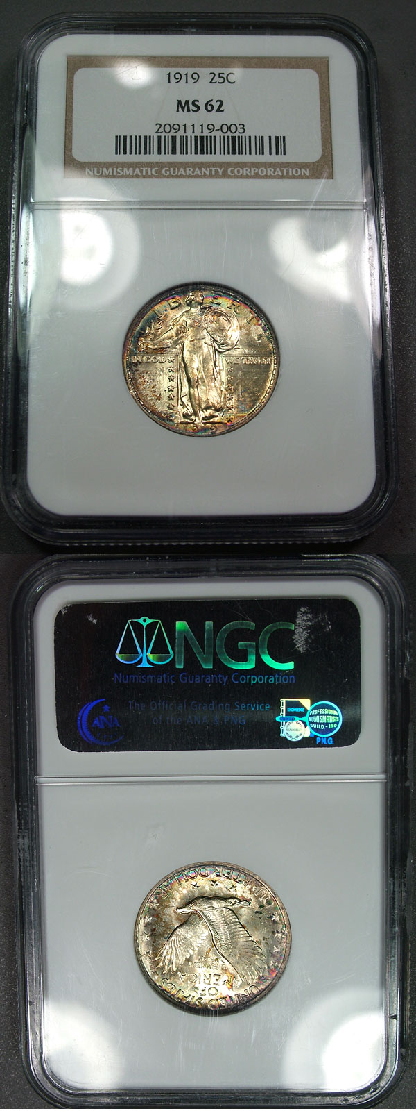 1919 25c NGC MS62 Beautifully Toned PQ Standing Liberty Quarter