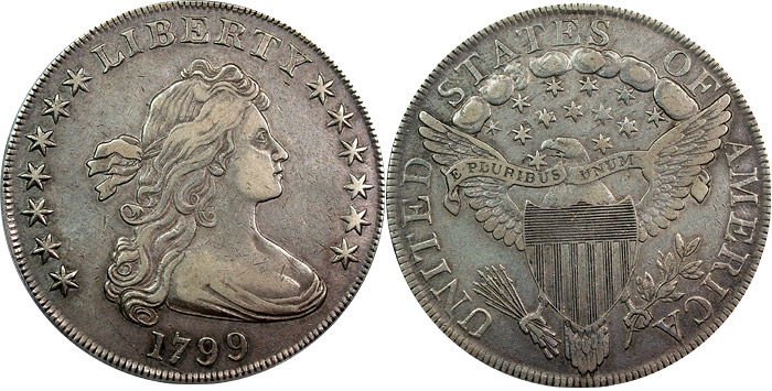 I always keep my eye out for attractive, problem free early US type and there is no date more common for the Bust Dollar type than 1799. It is like the 1881-S of the Bust Dollars. These puppies are readily available with one caveat. If you want a nice, problem free, distraction free, adjustment mark free, and past-cleaning free example, you could be looking for a good stretch of time. I have done the leg-work pulling this beauty out of the woodwork so if you are looking for a very pleasing example of this wonderful early Silver Dollar, here it is right here.