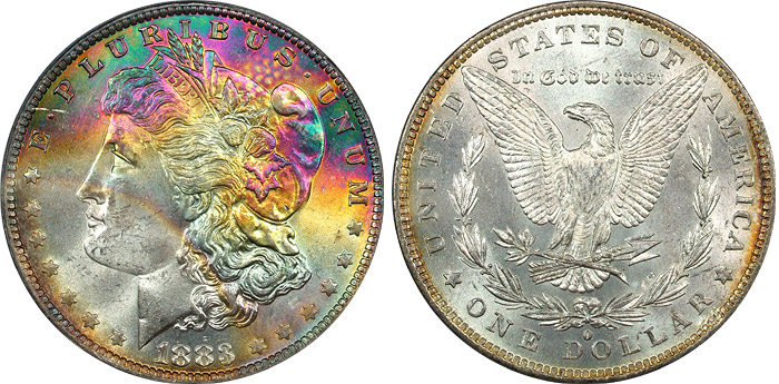 View the largest gallery of high-end and Monster rainbow toned Morgan dollars, an informational guide on how to tell natural vs. artificial toning, learn to price toned Morgans, view auction results of rainbow Morgans, and view what characteristics to look for in high-end toned rainbow Morgan dollars.