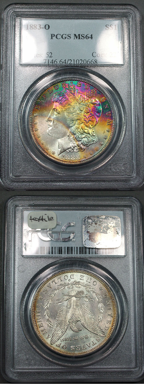 1883-O $1 PCGS MS64 Neon Textile Rainbow Toned Morgan
