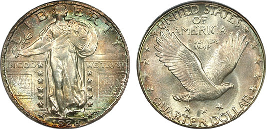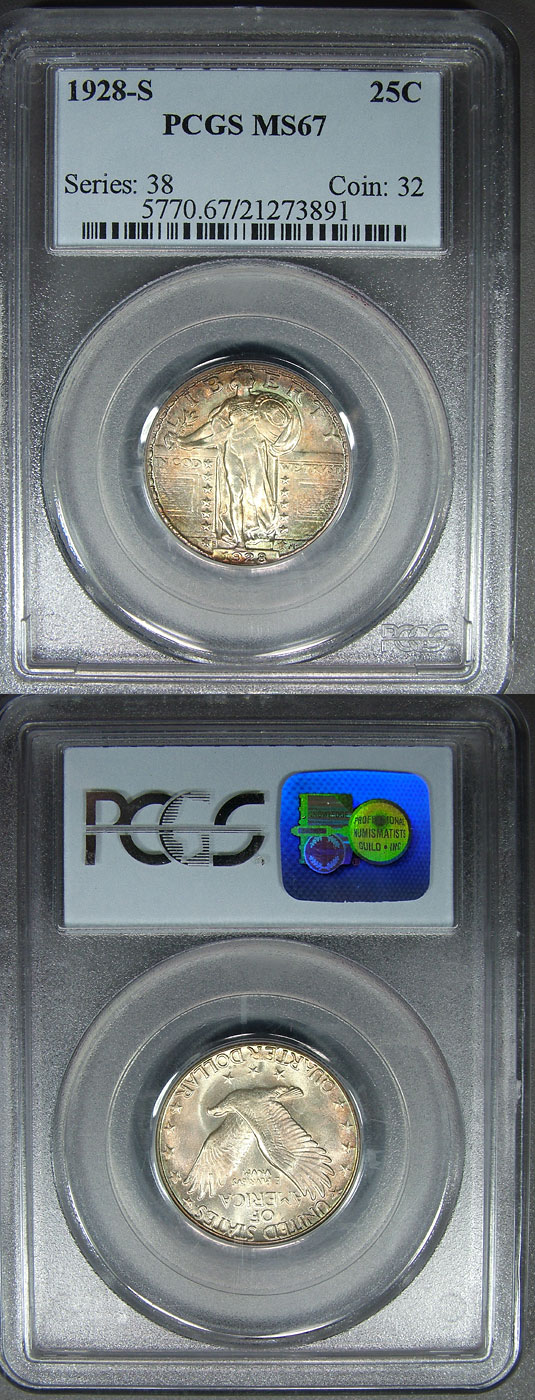 1928-S 25c PCGS MS67 Beautifully Toned Standing Liberty