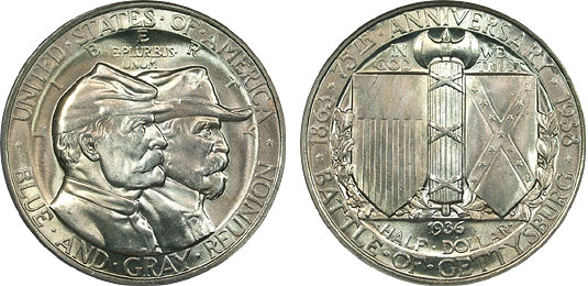 1936 50c PCGS MS65 Lustrous Gettysburg PQ Clean Shields