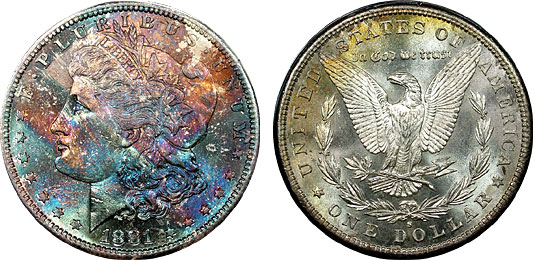 rainbow Morgan dollars.