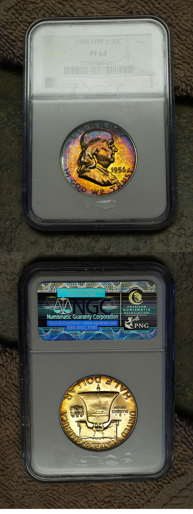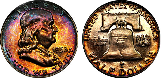 1956 50c NGC PF64 Type 2 Rainbow Toned Proof Franklin