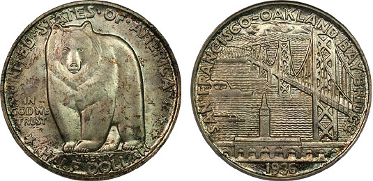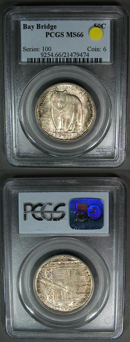 1936 50c PCGS MS66 Lustrous Toned Bay Bridge Commem