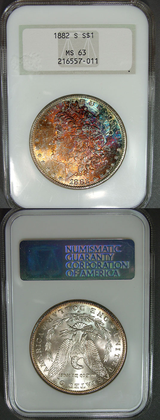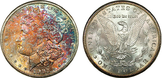 View the largest gallery of high-end and Monster rainbow toned Morgan dollars, an informational guide on how to tell natural vs. artificial toning, learn to price toned Morgans, view auction results of rainbow Morgans, and view what characteristics to look for in high-end toned rainbow Morgan dollars.