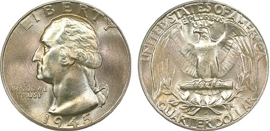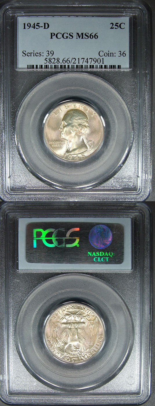 1945-D 25c PCGS MS66 Tan & Lustrous Washington Quarter
