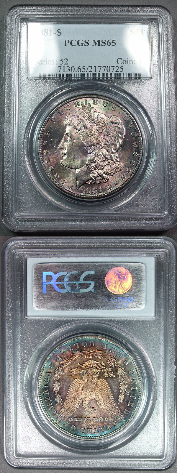 1881-S $1 PCGS MS65 Lustrous Monochrome Morgan - Black Ice