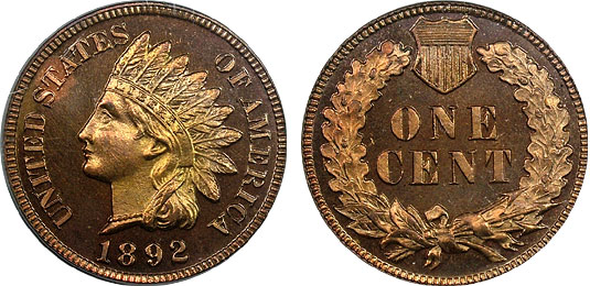Stunning 1892 Proof Indian Head Cent. Coin exhibits cameo qualities with frosted Miss Liberty and deep mirror-like fields. Needle sharp design elements grace glassy, well preserved fields. Warm chestnut brown with mint reds in abundance. What a wonderful piece!
