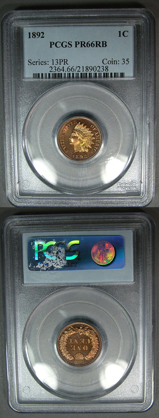 1892 1c PCGS PF66RB Stunning Proof Indian Cent - Cameo?