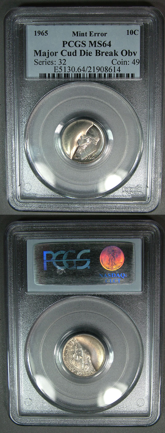 1965 10c PCGS MS64 Elephant Man Cud Die Break Roosie