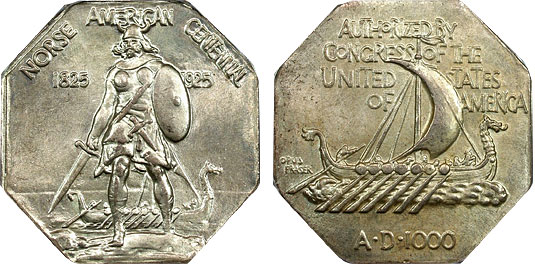 This fantastic medal was struck in 1925 and is lovingly known as a Norse Medal. Sorry Columbus, Leif Erikson found America close to 500 years before your sorry ass did. While Leif was only commemorated by this Medal, which comes in both thick and thin varieties in silver and in smaller sizes composed of both copper and gold. Meanwhile, Columbus gets his name on the Columbian Exposition that occurred in 1892 and 1893 (even though there was a replica Viking ship parked just outside the event in protest). Columbus was even honored with a national holiday and an 1892 and 1893 Commemorative. Don''t believe everything you read in history books in school kids.