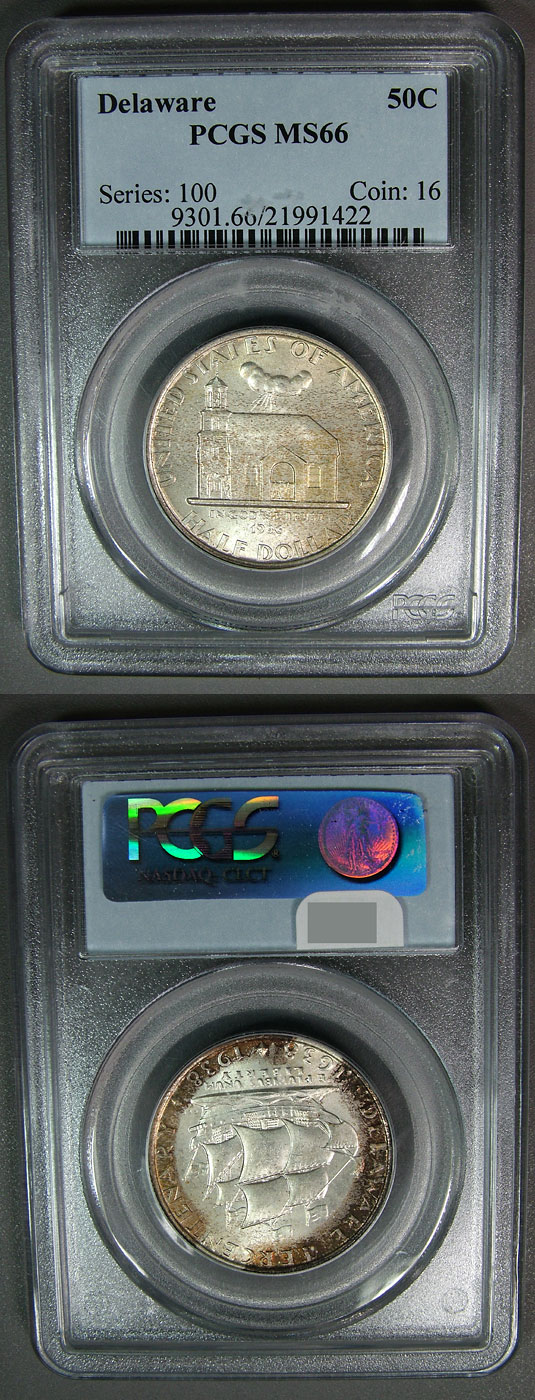 1936 50c PCGS MS66 Tab Toned Delaware Commemorative