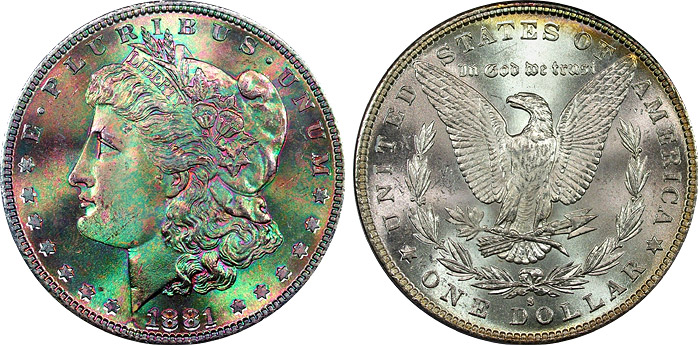 View the largest gallery of high-end and Monster rainbow toned Morgan dollars, an informational guide on how to tell natural vs. artificial toning, learn to price toned Morgans, view auction results of rainbow Morgans, and view what characteristics to look for in high-end toned rainbow Morgan dollars.