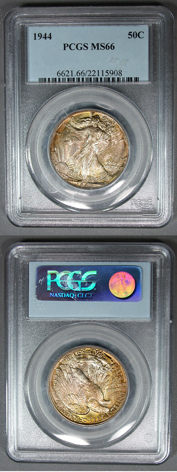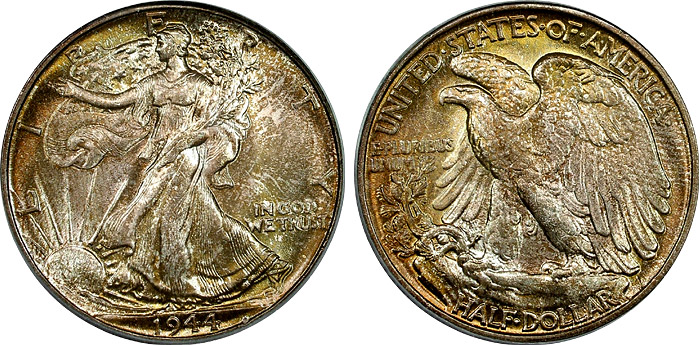 1944 50c PCGS MS66 Toned Lustrous Walking Liberty Half