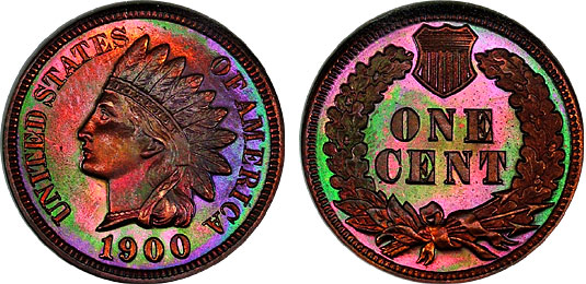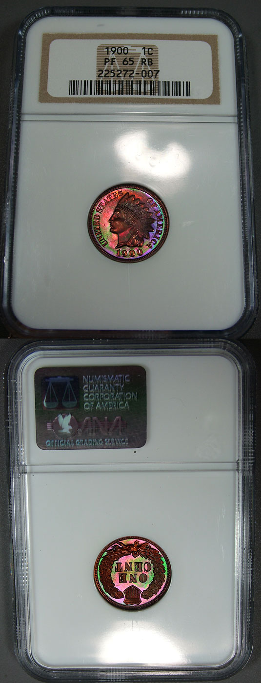 1900 1c NGC PF65RB Neon Rainbow Toned Proof Indian Cent