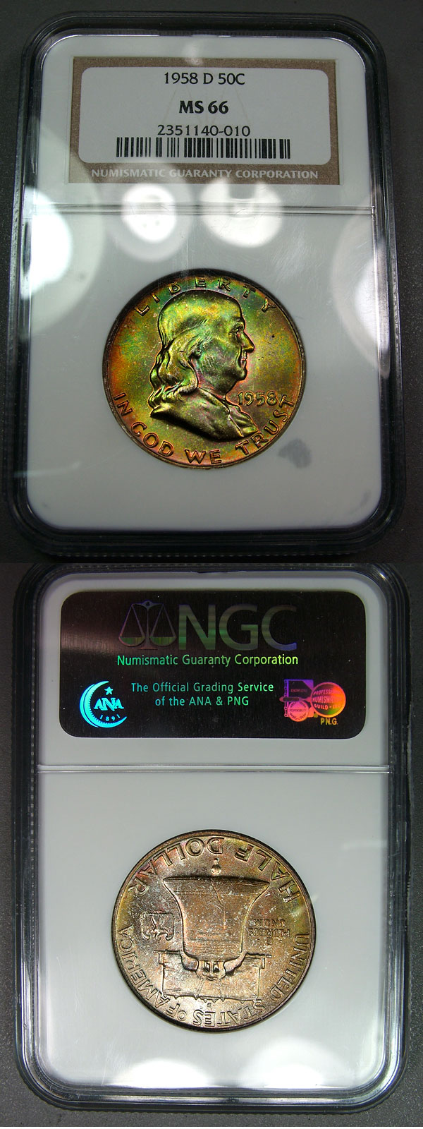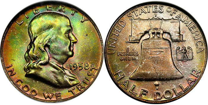 1958-D 50c NGC MS66 Toned Franklin Half