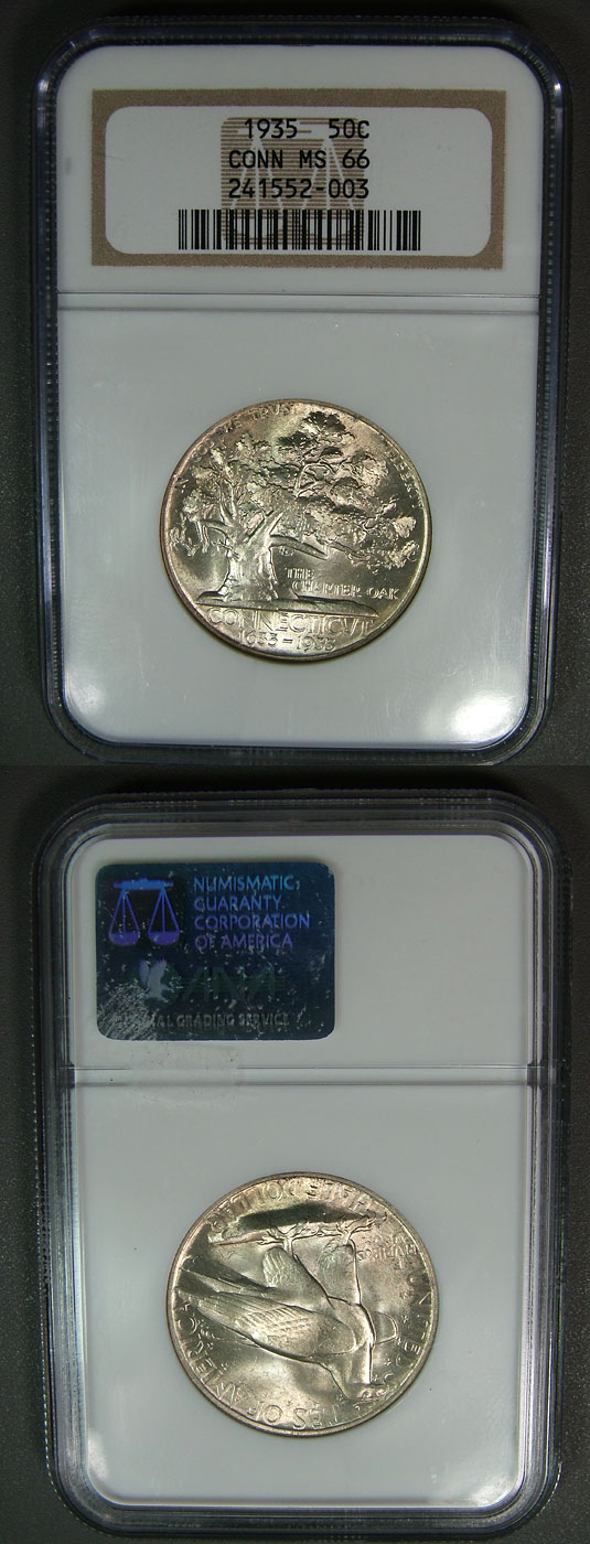 Awesome 1935 50c NGC MS66 Connecticut Commemorative is bold, blasty and dripping with luster! Coin is needle sharp and incredibly appealing. Soft gold and lilac tones are evident throughout, lending to the overall appeal. Devices are absolutely hammered. Hurry on this exceptional piece!