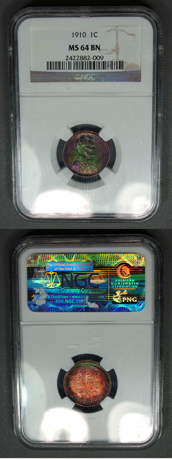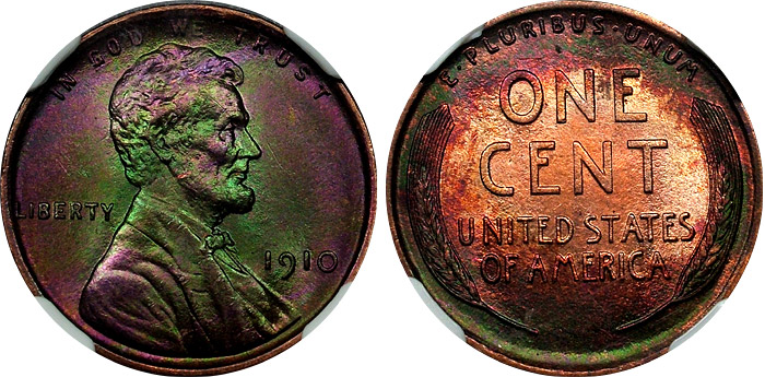 1910 1c NGC MS64 BN Richly Toned Lincoln Cent