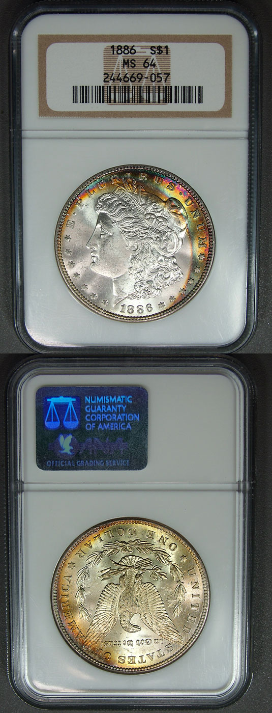 1886 $1 NGC MS64 Rainbow Ring Toned Morgan Dollar